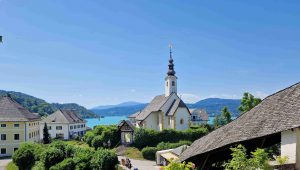 Schifffahrt an das idyllisch gelegene Südufer des Wörthersees und Besuch des malerischen Wallfahrtsortes Maria Wörth.